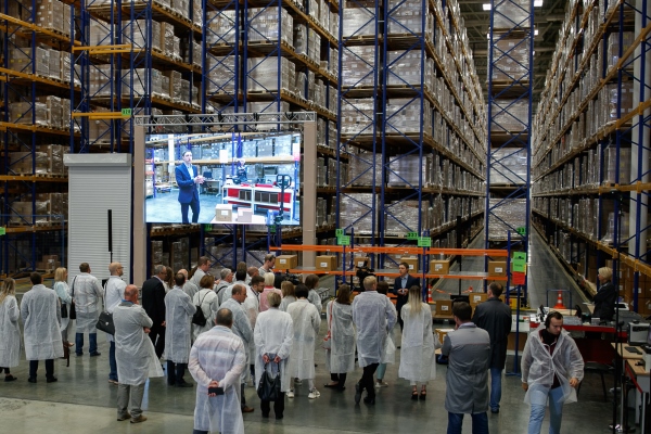 На складе ГК «САНТЭНС» участники мероприятия смогли наблюдать технологическую цепочку, состоящую из следующих процессов: